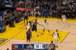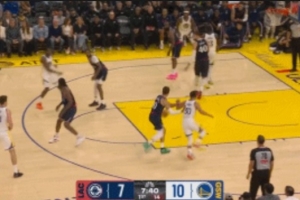 追梦真传?!库明加弧顶潇洒击地妙传助库里轻松上篮