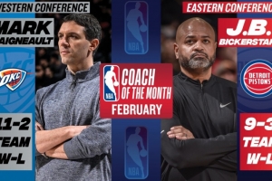 体育资讯3月4日讯 今日NBA官方宣布,雷霆主教练戴格诺特和活塞主教练比克斯塔夫当选二月份东西部最佳教练。