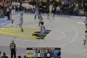 篮下空了!艾顿顺下接斯玛特传球轻松空接扣篮