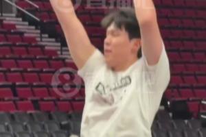 希望比赛进一个!小吧现场看杨瀚森赛前狂练三分 将对偶像约基奇~