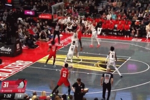 媒体人:今天杨瀚森想上场就比较难了 开拓者感觉在边缘化五号位
