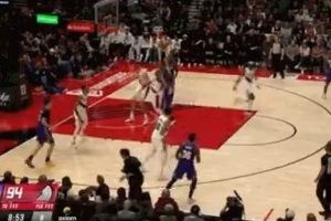 玩起来了!哈滕血帽威少 进攻端背对篮筐出手离谱偏出