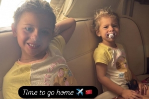塞尔吉尼奥的妻子在社媒晒出了两个孩子在机舱中的照片,她为此配文“是时候回家了”,并附上了“飞往中国”的表情。