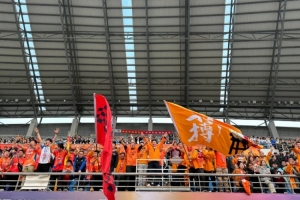 “江西赢天下”首先表达了江西球迷对蒸蒸日上、欣欣向荣的美好生活的追求;同时“赢”音同“迎”也含有江西球迷敞开胸怀,欢迎天下宾朋之意,体现江西球迷的热情好客。同时“江西赢天下”也寓意着江西足球不服输、战必胜的精神内核,象征着江西足球对胜利、对美好的追求。