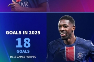 数据统计显示,登贝莱去年为巴黎各项赛事42场仅打进13球,而今年13场已打进18球。