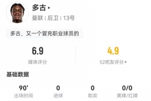 体育资讯3月7日讯 曼联在本轮欧联杯1-1战平皇家社会,多古本场数据如下: