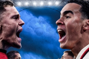 拜仁官方社媒晒出了为此役制作的海报,两队各5名球员出镜,穆西亚拉、基米希vs维尔茨、扎卡。