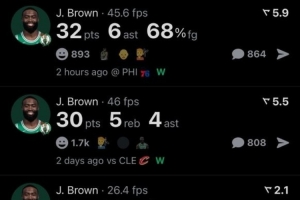 单核带队!杰伦-布朗过去四场比赛3次砍下30+ 其中还有一场40+