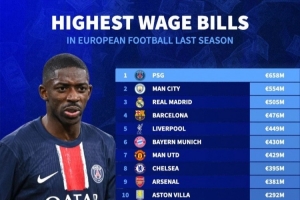 体育资讯3月7日讯 欧足联不久前公布了各俱乐部上赛季薪资情况,《转会市场》也就此列出了榜单,巴黎居首。