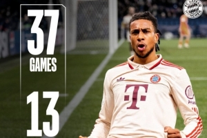 数据统计显示,23岁的法国边锋在去年夏天5300万欧元从水晶宫转会拜仁,本赛季各项赛事为拜仁出战37场,贡献13球13助攻。