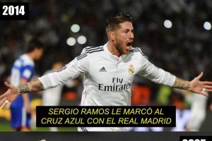 2014年底的世俱杯半决赛,皇马4-0蓝十字,拉莫斯第15分钟头球破门,帮助皇马先拔头筹↓