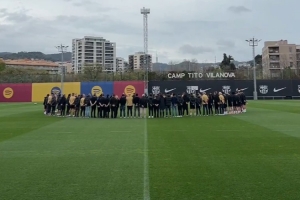 体育资讯3月9日讯 巴萨球员在今天的训练前为突然离世的球队队医默哀。