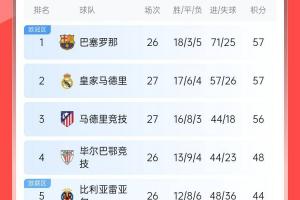 最新西甲积分榜↓