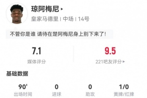 体育资讯3月10日讯 皇马在本轮西甲2-1力克巴列卡诺,琼阿梅尼本场数据如下: