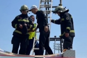 上赛季,国安的“训练神器”高空起降梯因设备故障无法下降,技术分析师困在空中,只能请消防人员营救,本赛季设备终于修复,今天投入使用。