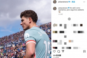 在昨天进行的西甲联赛中,马竞1-2遭赫塔费逆转,阿尔瓦雷斯首发出战58分钟被换下。在个人社媒,他发文鼓励球队:“这没有按照我们想要的方式进行,但我们会继续前进。”