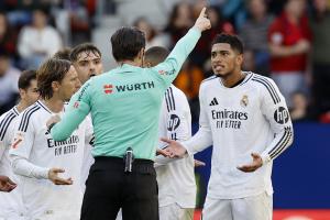 体育资讯2月16日讯 西甲第24轮,十人皇马1-1奥萨苏纳。本场比赛,主裁判何塞-穆努埃拉对皇马的多次判罚引发争议。