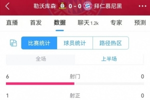 体育资讯2月16日讯 勒沃库森在本轮德甲上半场0-0战平拜仁,两队关键数据如下: