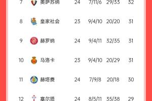 皇马51分仍排榜首,马竞50分第二。巴萨未赛以48分排在第三,他们将在18号凌晨主场迎战巴列卡诺。