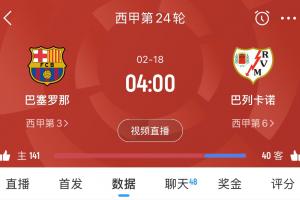 巴萨将在18号凌晨对阵巴列卡诺,取胜将登顶,他们联赛已三连胜。
