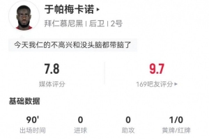 体育资讯2月16日讯 拜仁在本轮德甲0-0逼平勒沃库森,于帕梅卡诺本场数据如下: