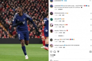 登贝莱也在赛后通过社媒晒出自己的庆祝照,并配文:“真是一个美好的夜晚……巴黎加油!!!🔴🔵 🙌🏿 没有时间放松。让我们继续前进吧!”