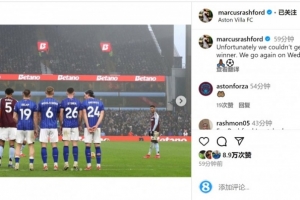 拉什福德赛后在社交媒体上晒出自己主罚任意球的照片,配文:“很遗憾我们未能攻入制胜球,下周三我们继续加油(对阵利物浦)。”