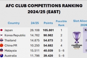 马来超 40.039分 2026-27赛季亚冠精英联赛名额1个