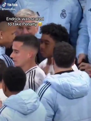 有镜头拍到点球大战前皇马在安排点球主罚球员,安帅与恩德里克说了两句,恩德里克眼神有些飘。之后安排吕迪格主罚。点球大战中吕迪格最后一个罚进,皇马晋级。