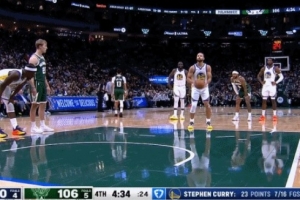 罚丢本赛季第一球!库里第四节制造犯规两罚一中