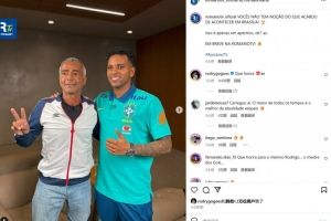 体育资讯3月19日讯 巴西国家队已经集结备战新一轮南美世预赛,罗德里戈、拉菲尼亚以及恩德里克三人做客RomárioTV节目,与巴西传奇球星罗马里奥合影留念。