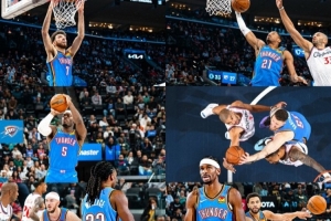 志在卫冕!雷霆8胜0负创队史最佳开局 赛后官方分享海报