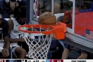 略尴尬!杜兰特使出招牌翻身跳投 但球卡到篮脖子上了