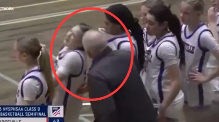 一位名叫Hailey Monroe的女球员正因输球伤心得泪流满脸,81岁的教练Jim Zullo还在身后猛拽她的马尾。好在队友帮她出头,呵斥并制止了教练的继续辱骂。