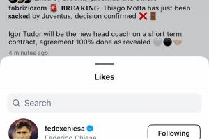 体育资讯3月24日讯 尤文官宣莫塔下课,在此之前,罗马诺先一步确认下课消息。当时罗马诺的消息发出仅4分钟,基耶萨就点赞了动态。
