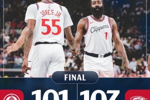 赛后快船官方晒出赛果海报,一众快船球迷在下方讨论,有责备裁判的,有怪泰伦-卢的,有骂哈登小卡的,也有埋汰角色球员的。部分高亮评论如下: