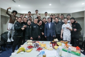 记者:在上一场比赛中,同曦男篮在客场仅以7人轮换击败广东队确认锁定季后赛席位(这次专访的进行是在同曦本月21号对阵福建之前),先请董事长谈谈这场比赛,在赢下的那一瞬间,您心里是什么样的感受?