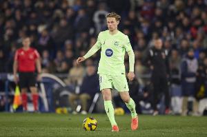 德容与巴萨的合同2026年到期,本赛季出战23场比赛,打进2球,助攻1次,出场时间1006分钟。