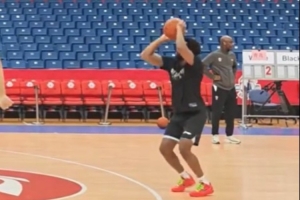 在赛前的投篮训练中,梅肯弧顶三分命中率极高!