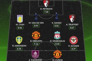 whoscored本轮英超最佳阵:库尼亚、姆伯莫领衔,索博、沙德在列