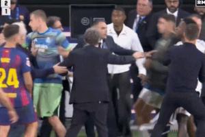 比赛结束姆巴佩还拉着维尼修斯,之后试图加入冲突被直接拦下