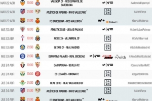 体育资讯3月27日讯 西甲官方公布第33轮比赛时间,皇马4月24日3:30出战赫塔费,巴萨和马竞的比赛时间视国王杯半决赛结果而定。