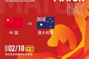 2月18日19:30,中国队将在U20亚洲杯小组赛末战中对阵澳大利亚队,一起为中国队加油!