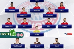 体育资讯3月28日讯 北京时间3月29日22:30,德甲第27轮,拜仁主场对阵圣保利,天空体育对此役双方首发进行了预测。