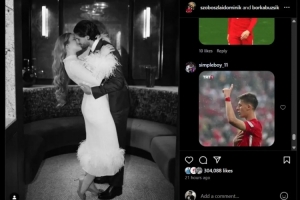 现在这种行为还未结束,索博昨天晒出自己的结婚照,评论区仍然有很多球迷在刷居勒尔的照片,不少支持索博的球迷则表示:“土耳其爱哭鬼又来了。”
