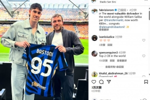 罗马诺在个人社媒晒出合影,配文写道:“在转会市场后卫身价中与萨利巴并列世界第一,目前8000万欧,恭喜。”