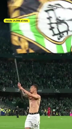 贝蒂斯德比战胜塞维利亚后,安东尼挥舞旗帜与球迷一起庆祝🔥