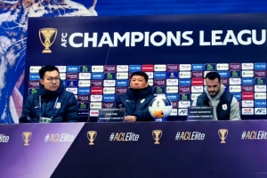 北京时间2月18日下午14:20,亚冠精英联赛第8轮蔚山HD对山东泰山赛前新闻发布会在蔚山文殊足球竞技场召开,代理主教练唐田与队员瓦科参加。