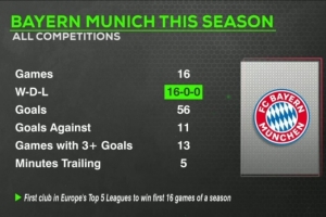 火力全开!拜仁本赛季16战全胜轰56球,13场进球3+、共计落后5分