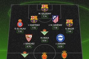 后卫:埃尔-希拉利(西班牙人)、伊尼戈(巴萨)、吉梅内斯(马竞)、巴尔德(巴萨)